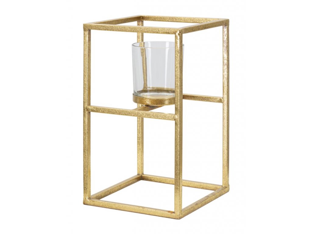 Zlatý stojan na svíčku Mauro Ferretti Poda, 15x15x25 cm