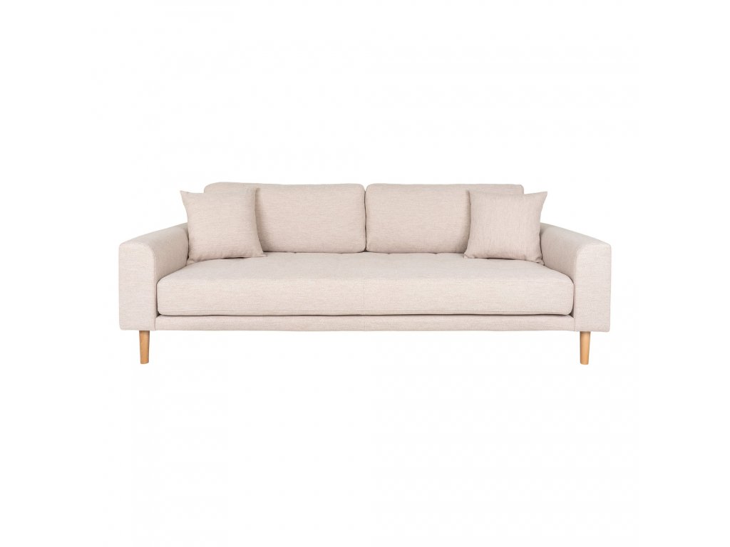 Pohovka Lido 3 sedák 210 cm, polyester světlé šedý je novinkou skandinávské firmy House Nordic, kterou užijete v obývacím pokoji nebo pokoji pro hosty. Pohovka Lido je velmi pohodlná, má opěrné polštáře na volno, čímž si můžete vytvořit bez rozkladu lůžko pro jednu osobu. Dva dekorační polštáře jsou součástí.