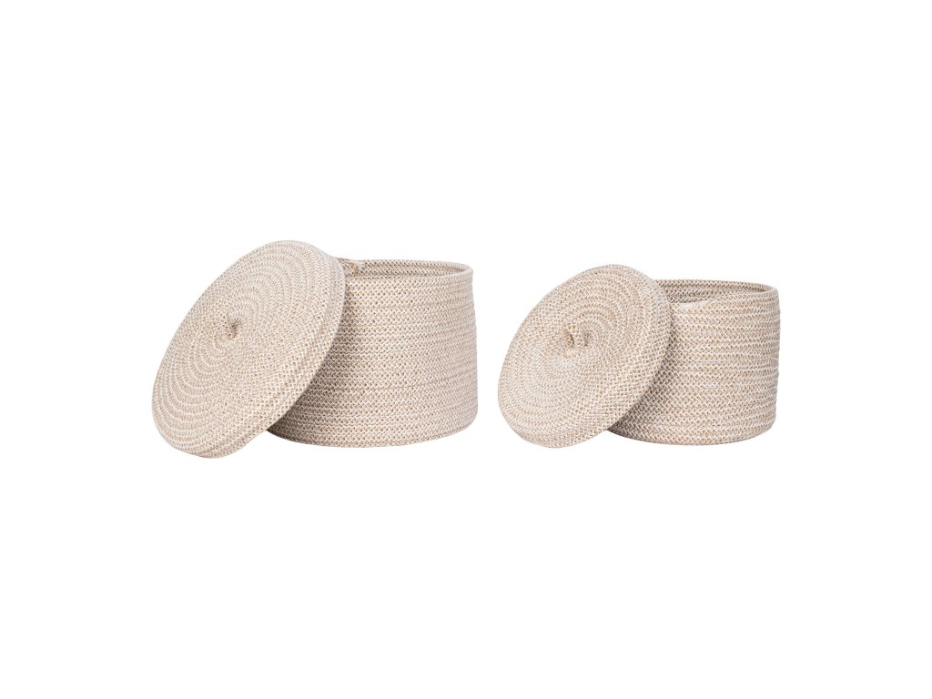 Košík s víkem Sebal Kurv z bavlny, v béžové barvě bude hezkou dekorací ve vašem obývacím pokoji. Sada 2 ks ať už na polici nebo konferenčním stolku bude ozdobou interiéru.