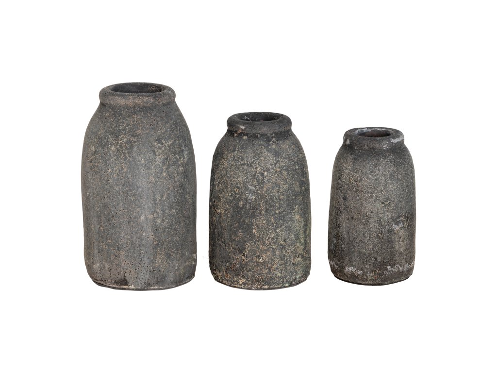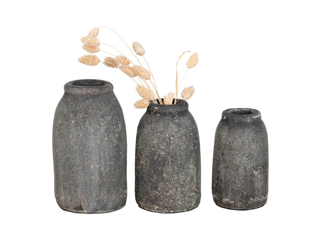 Set 3 ks terakotových váz Halat, tmavě šedá