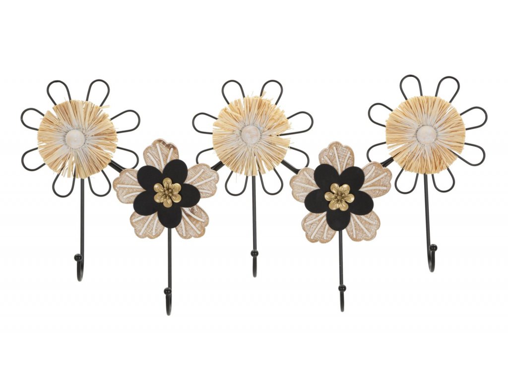 Nástěnný věšák Ferro, Legno Raffia od firmy Mauro Ferretti o rozměrech 61 x 5,5 x 30,5 cm složený z 5 květin se střídajícími se dekoracemi ozdobí váš interiér. Hodí se do haly či předsíně. Kompletní s 5 háčky.