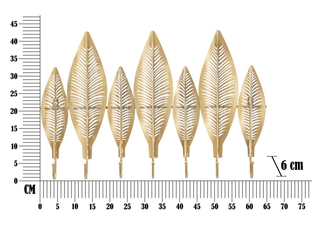 Zlatý nástěnný věšák Mauro Ferretti Leaf, 65x42,5x6 cm